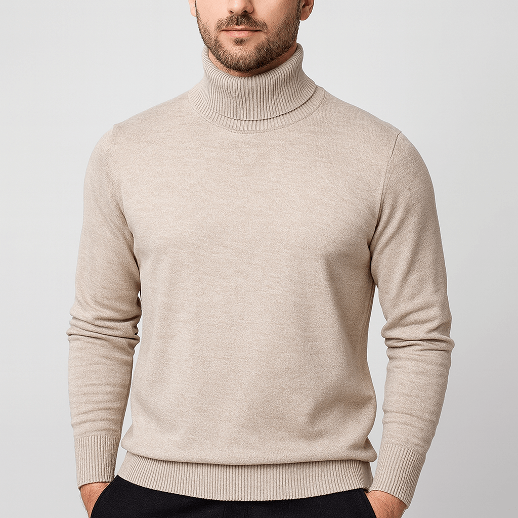 Denne herretrøje med rullekrave er raffineret og ubesværet alsidig og kombinerer klassisk design med exceptionel komfort. Den er fremstillet af en glat, blød strikblanding og tilbyder en blid, hudvenlig fornemmelse, der er ideel til lag-på-lag eller alene. Den ribbede halsudskæring, manchetter og kant giver et rent finish, mens den diskrete beige tone tilføjer et tidløst look.