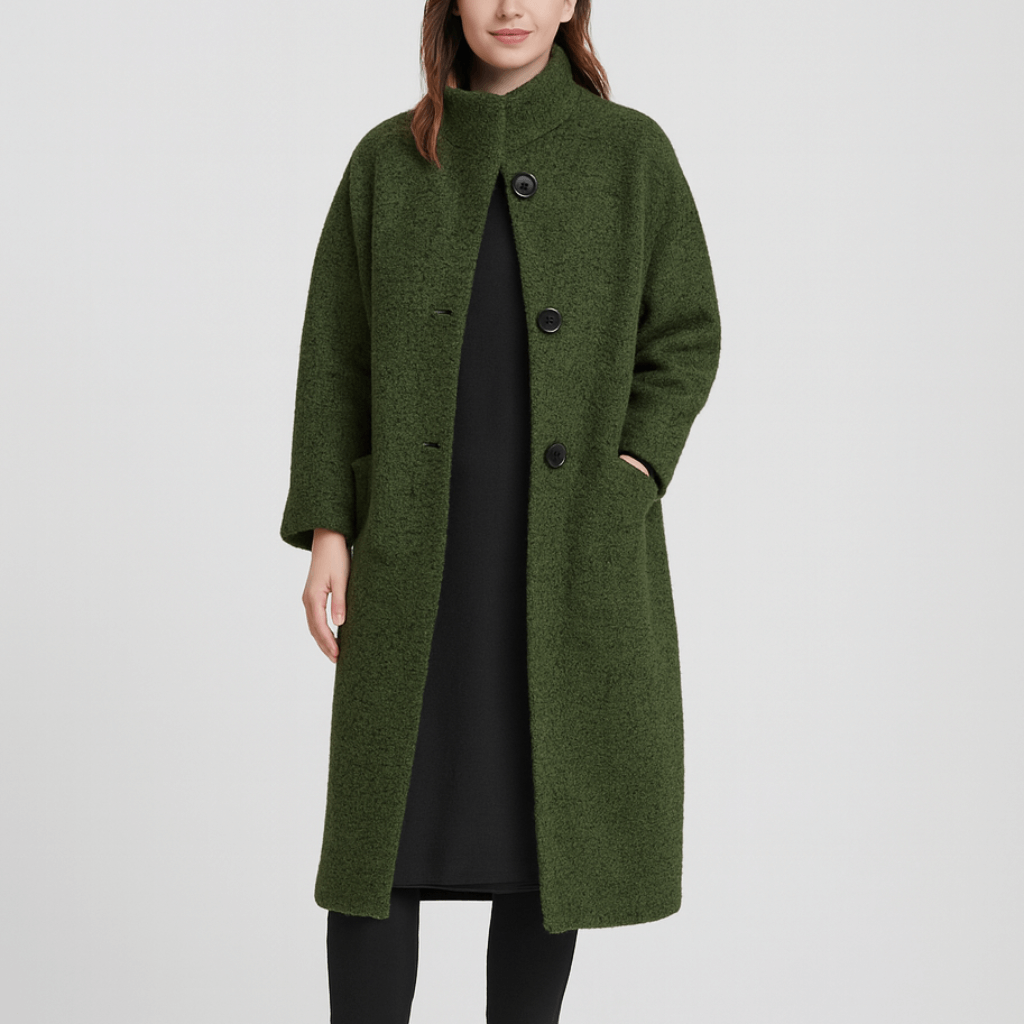 Denne plus størrelse uldfrakke er designet til at holde dig varm og stilfuld i de kolde måneder. Med en høj hals og lange ærmer tilbyder den en behagelig pasform, der er perfekt til daglig brug. Frakken har to praktiske lommer foran og fås i farverne grøn, gul og rød. Den er ideel til forår, efterår og vinter, og kan nemt kombineres med forskellige beklædningsgenstande til enhver lejlighed.