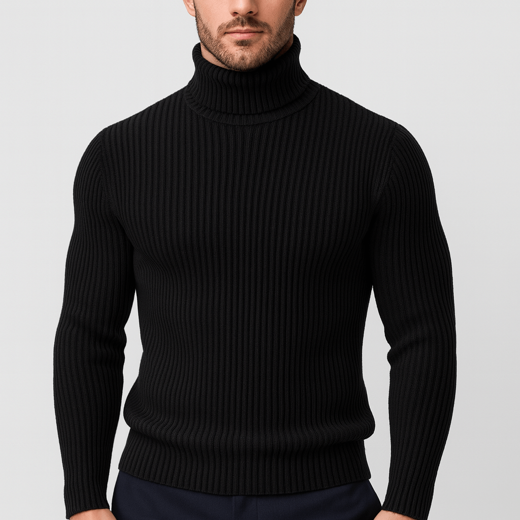 Ribbet herretrøje med rullekrave