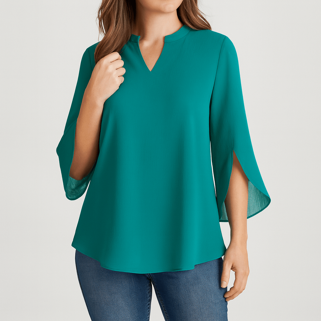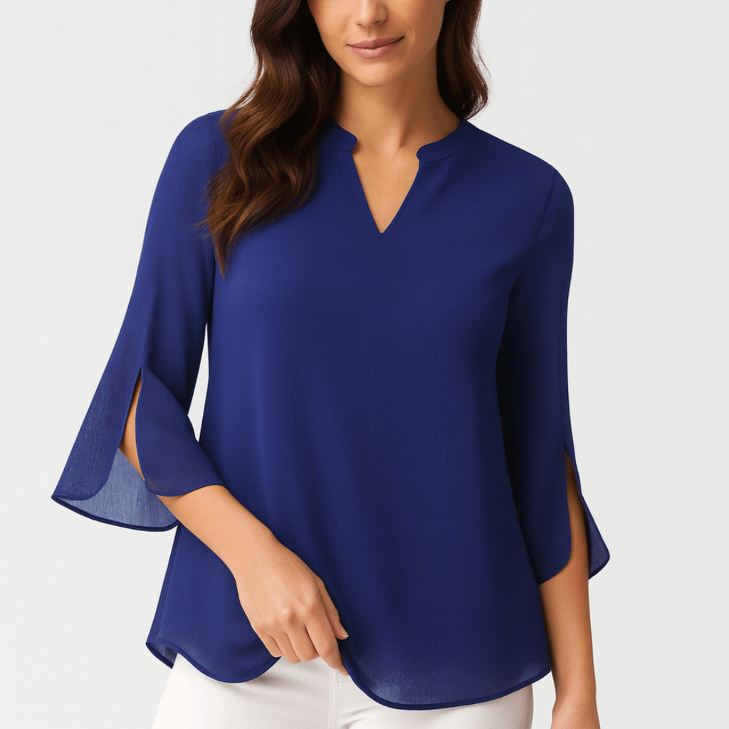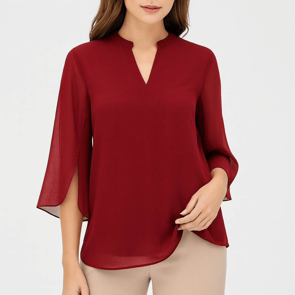 Oplev denne stilfulde bluse, der kombinerer elegance med komfort. Den løse silhuet draperer smukt og gør den til et alsidigt valg til enhver lejlighed. Blusen har feminine træk, der tilføjer et strejf af sofistikering, hvilket gør den ideel til både hverdag og fest. Den kan nemt styles med nederdele, bukser eller jeans, hvilket giver mange muligheder for at skabe forskellige udtryk.
