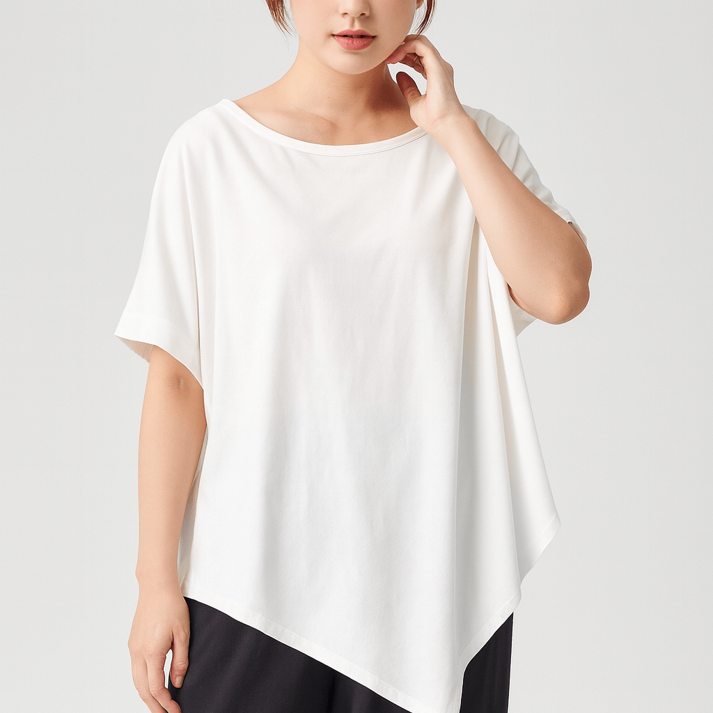 Oplev en moderne stil med denne uregelmæssige bluse. Den er lavet af rent bomuldsstof, hvilket gør den blød og behagelig at have på. Blusen har en rund halsudskæring og kortærmer, hvilket gør den ideel til varme dage. Den unikke høj-lav søm tilføjer et stilfuldt præg, mens den ensfarvede stil gør den alsidig til forskellige kombinationer. Perfekt til både sommer og efterår, kan den kombineres med jeans eller shorts for et afslappet look.